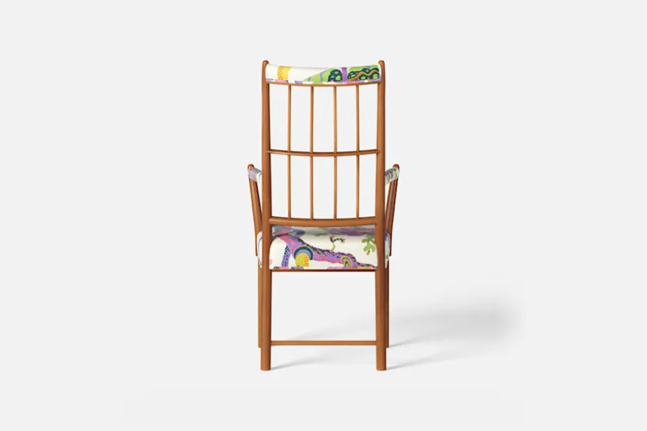 Karmstol 652 formgav Josef Frank 1936, och tre år senare användes den i interiören vid Golden Gate-utställningen i San Fransisco. Den eleganta karmstolen har en hög genombruten rygg av runda svarvade pinnar sammanbundna av en tvärslå, vilket bildar ett geometriskt luftigt mönster. För att skapa en spänning i formen valde Josef Frank ofta att blanda olika träslag och material.