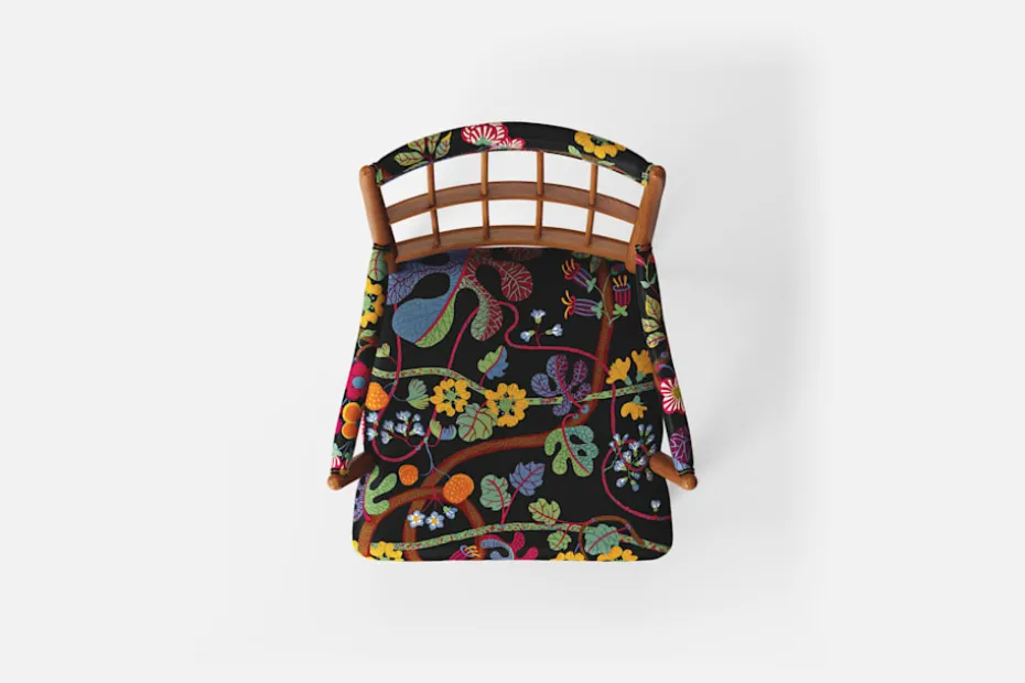 Karmstol 652 formgav Josef Frank 1936, och tre år senare användes den i interiören vid Golden Gate-utställningen i San Fransisco. Den eleganta karmstolen har en hög genombruten rygg av runda svarvade pinnar sammanbundna av en tvärslå, vilket bildar ett geometriskt luftigt mönster. För att skapa en spänning i formen valde Josef Frank ofta att blanda olika träslag och material.