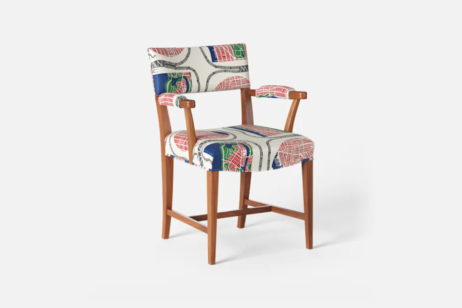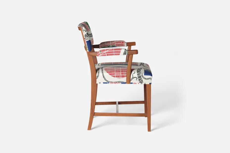 Stol 695 formgavs av Josef Frank år 1935. Hans filosofi var att möblerna skulle ge användaren maximal bekvämlighet och stol 695 har därför en omsorgsfullt stoppad ryggdyna.