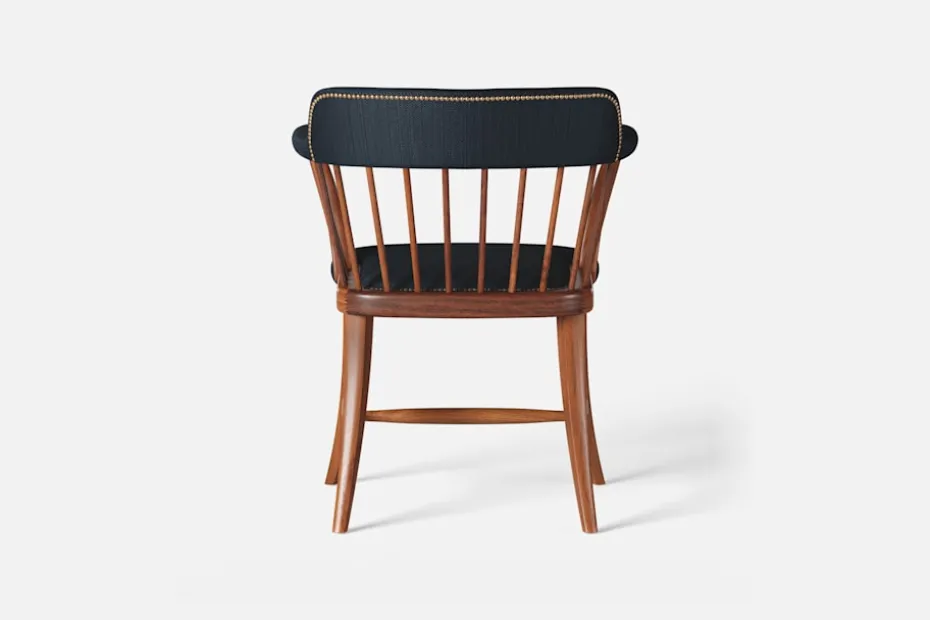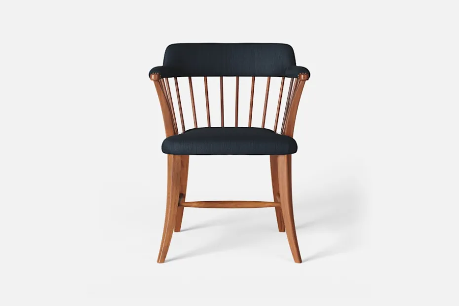 I tidskriften Obs! 1954, skrev arkitekten och formgivaren Josef Frank: ”Den som betraktar en stol som en sittmöbel bara för att sitta på kommer alltid att sitta obekvämt. Man sitter på en stol för att göra något annat, för att arbeta eller äta vid ett bord, och man lämnar stolen så fort man kan. En stol är bekväm för sitt ändamål om man inte tröttnar för fort, det vill säga om stolen anpassar sig efter alla ställningar som man vill inta. Själv sätter jag mig överhuvudtaget aldrig på en stol, som är formad för en enda ställning. Jag vill ha möjlighet att sitta på olika sätt vid olika tillfällen och olika tider på dagen.” Karmstol 789 formgavs av Josef Frank för Svenskt Tenn 1938. Dess genombrutna stolsrygg är skapad i enlighet med tankarna om att inte föra in avgränsande hinder och väggar i interiören. Formen är typisk för tidig viktoriansk epok och kallas i England allmänt för ”Captain’s chair”. Det robusta i den traditionella kaptensstolen motverkas dock av benens och ryggens svängda linjer och underredets H-kryss. Stolen nylanserades på Svenskt Tenn 2019 och tillverkas hantverksmässigt hos Gemla, Sveriges äldsta möbelfabrik.