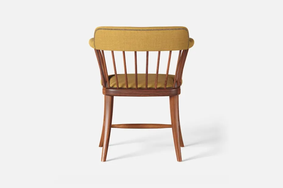 I tidskriften Obs! 1954, skrev arkitekten och formgivaren Josef Frank: ”Den som betraktar en stol som en sittmöbel bara för att sitta på kommer alltid att sitta obekvämt. Man sitter på en stol för att göra något annat, för att arbeta eller äta vid ett bord, och man lämnar stolen så fort man kan. En stol är bekväm för sitt ändamål om man inte tröttnar för fort, det vill säga om stolen anpassar sig efter alla ställningar som man vill inta. Själv sätter jag mig överhuvudtaget aldrig på en stol, som är formad för en enda ställning. Jag vill ha möjlighet att sitta på olika sätt vid olika tillfällen och olika tider på dagen.” Karmstol 789 formgavs av Josef Frank för Svenskt Tenn 1938. Dess genombrutna stolsrygg är skapad i enlighet med tankarna om att inte föra in avgränsande hinder och väggar i interiören. Formen är typisk för tidig viktoriansk epok och kallas i England allmänt för ”Captain’s chair”. Det robusta i den traditionella kaptensstolen motverkas dock av benens och ryggens svängda linjer och underredets H-kryss. Stolen nylanserades på Svenskt Tenn 2019 och tillverkas hantverksmässigt hos Gemla, Sveriges äldsta möbelfabrik.