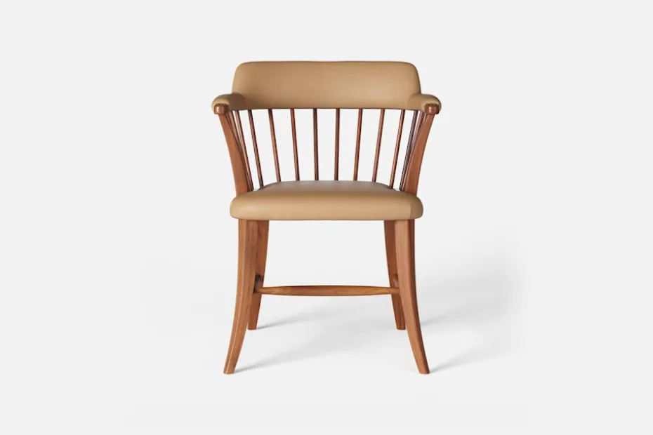 I tidskriften Obs! 1954, skrev arkitekten och formgivaren Josef Frank: ”Den som betraktar en stol som en sittmöbel bara för att sitta på kommer alltid att sitta obekvämt. Man sitter på en stol för att göra något annat, för att arbeta eller äta vid ett bord, och man lämnar stolen så fort man kan. En stol är bekväm för sitt ändamål om man inte tröttnar för fort, det vill säga om stolen anpassar sig efter alla ställningar som man vill inta. Själv sätter jag mig överhuvudtaget aldrig på en stol, som är formad för en enda ställning. Jag vill ha möjlighet att sitta på olika sätt vid olika tillfällen och olika tider på dagen.” Karmstol 789 formgavs av Josef Frank för Svenskt Tenn 1938. Dess genombrutna stolsrygg är skapad i enlighet med tankarna om att inte föra in avgränsande hinder och väggar i interiören. Formen är typisk för tidig viktoriansk epok och kallas i England allmänt för ”Captain’s chair”. Det robusta i den traditionella kaptensstolen motverkas dock av benens och ryggens svängda linjer och underredets H-kryss. Stolen nylanserades på Svenskt Tenn 2019 och tillverkas hantverksmässigt hos Gemla, Sveriges äldsta möbelfabrik.