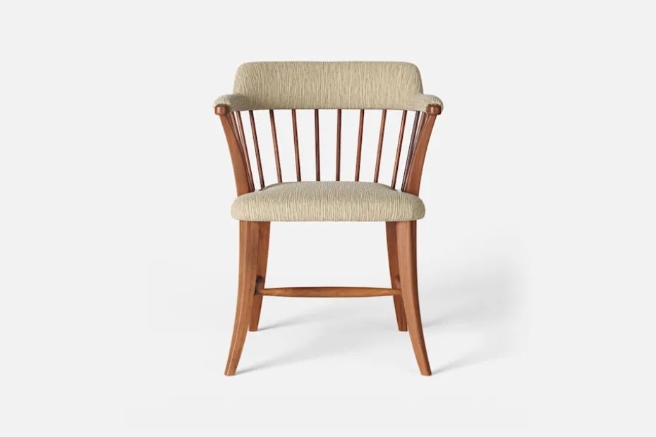 I tidskriften Obs! 1954, skrev arkitekten och formgivaren Josef Frank: ”Den som betraktar en stol som en sittmöbel bara för att sitta på kommer alltid att sitta obekvämt. Man sitter på en stol för att göra något annat, för att arbeta eller äta vid ett bord, och man lämnar stolen så fort man kan. En stol är bekväm för sitt ändamål om man inte tröttnar för fort, det vill säga om stolen anpassar sig efter alla ställningar som man vill inta. Själv sätter jag mig överhuvudtaget aldrig på en stol, som är formad för en enda ställning. Jag vill ha möjlighet att sitta på olika sätt vid olika tillfällen och olika tider på dagen.” Karmstol 789 formgavs av Josef Frank för Svenskt Tenn 1938. Dess genombrutna stolsrygg är skapad i enlighet med tankarna om att inte föra in avgränsande hinder och väggar i interiören. Formen är typisk för tidig viktoriansk epok och kallas i England allmänt för ”Captain’s chair”. Det robusta i den traditionella kaptensstolen motverkas dock av benens och ryggens svängda linjer och underredets H-kryss. Stolen nylanserades på Svenskt Tenn 2019 och tillverkas hantverksmässigt hos Gemla, Sveriges äldsta möbelfabrik.