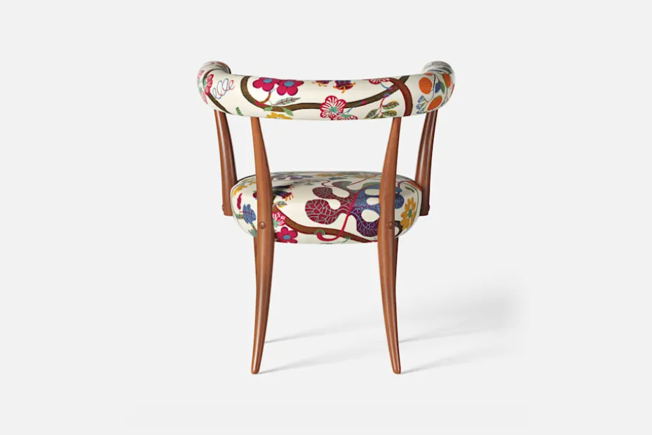 Josef Frank formgav Karmstol 966 för Svenskt Tenn 1938. Stolen visades i samband med Världsutställningen i New York 1939, där Svenskt Tenn gjorde stor succé med sin nytänkande formgivning. Den hästskoformade ryggbrickan och de utsvängda benen vittnar om en viss inspiration från antikens klismos- och sullastolar. Karmstolen finns i Estrid Ericsons inredning på Tolvekarna 1952 klädd i leopardmönstrad textil.