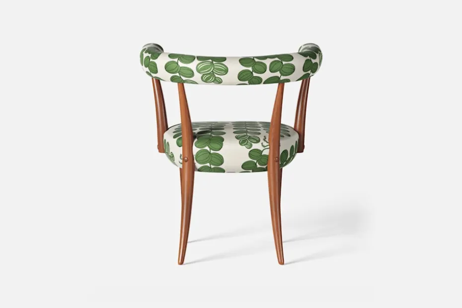 Josef Frank formgav Karmstol 966 för Svenskt Tenn 1938. Stolen visades i samband med Världsutställningen i New York 1939, där Svenskt Tenn gjorde stor succé med sin nytänkande formgivning. Den hästskoformade ryggbrickan och de utsvängda benen vittnar om en viss inspiration från antikens klismos- och sullastolar. Karmstolen finns i Estrid Ericsons inredning på Tolvekarna 1952 klädd i leopardmönstrad textil.