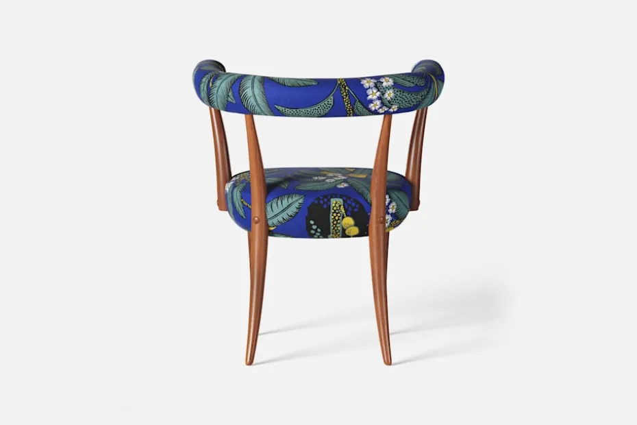 Josef Frank formgav Karmstol 966 för Svenskt Tenn 1938. Stolen visades i samband med Världsutställningen i New York 1939, där Svenskt Tenn gjorde stor succé med sin nytänkande formgivning. Den hästskoformade ryggbrickan och de utsvängda benen vittnar om en viss inspiration från antikens klismos- och sullastolar. Karmstolen finns i Estrid Ericsons inredning på Tolvekarna 1952 klädd i leopardmönstrad textil.