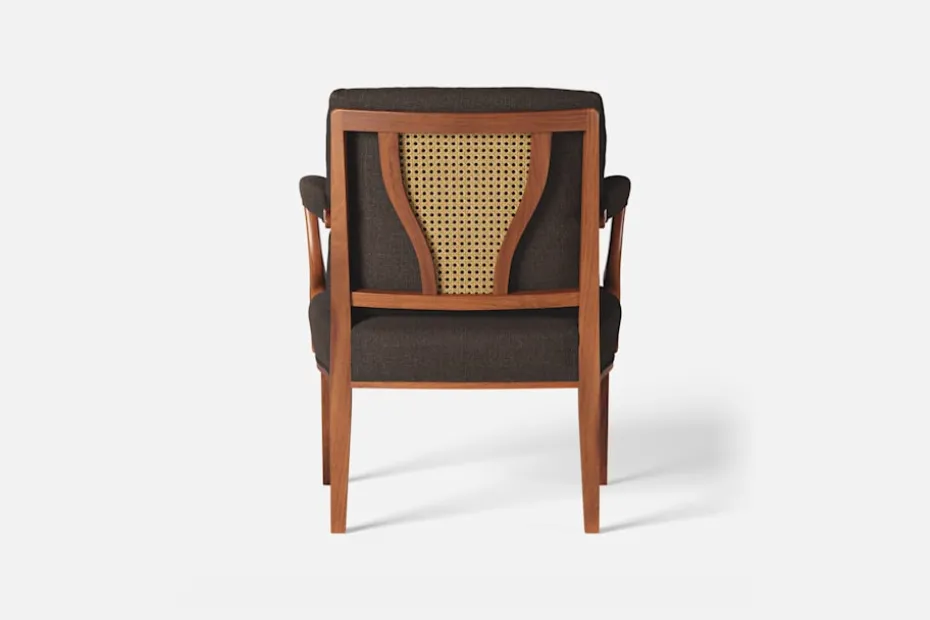 Med inspiration från 1700-talets nätta karmstolar formgav Josef Frank karmstol 969. För att skapa spänning i formgivningen valde Josef Frank ofta att blanda olika träslag och material. Karmstol 969 är gjord i mahogny med infällning av rotting i ryggen bakom den löstagbara kudden. Stolen formgavs 1939 och finns i två olika sitthöjder.