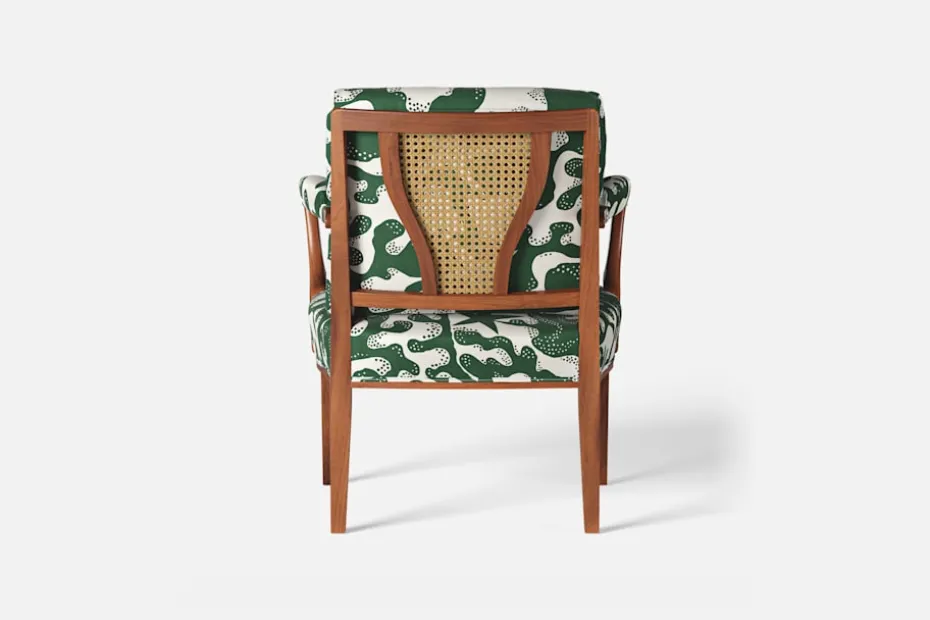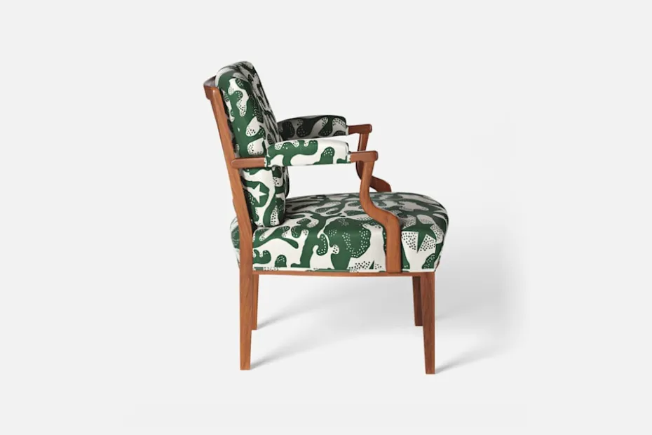 Med inspiration från 1700-talets nätta karmstolar formgav Josef Frank karmstol 969. För att skapa spänning i formgivningen valde Josef Frank ofta att blanda olika träslag och material. Karmstol 969 är gjord i mahogny med infällning av rotting i ryggen bakom den löstagbara kudden. Stolen formgavs 1939 och finns i två olika sitthöjder.
