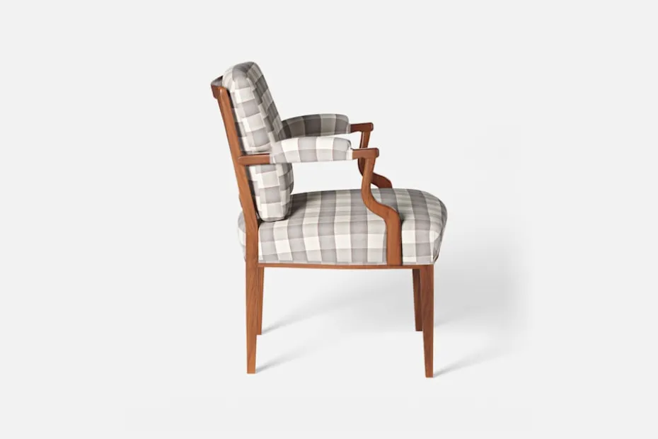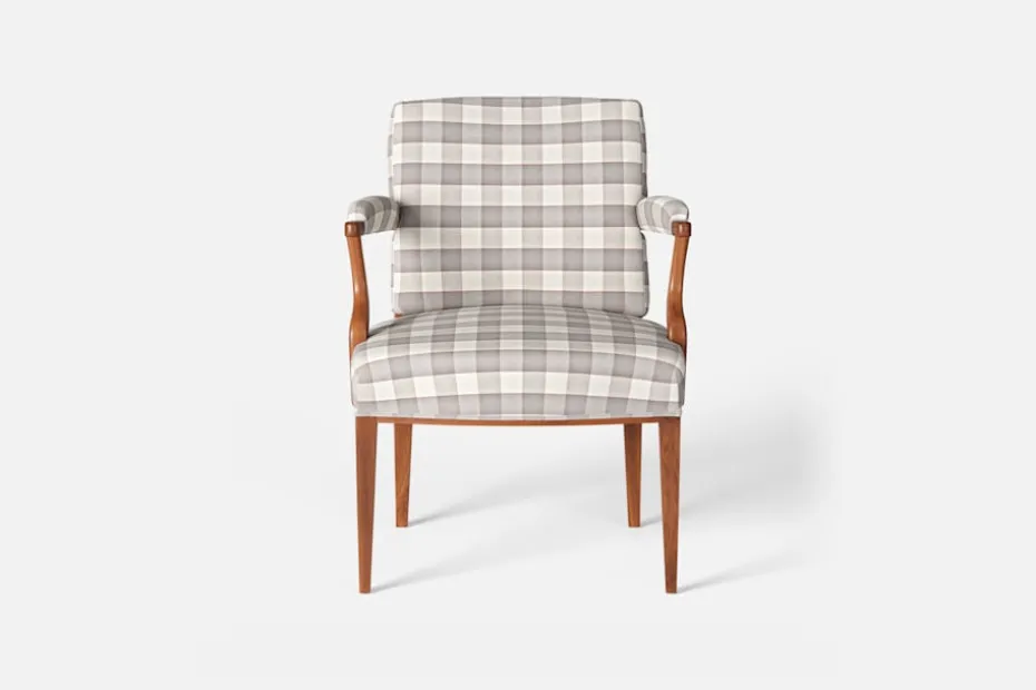 Med inspiration från 1700-talets nätta karmstolar formgav Josef Frank karmstol 969. För att skapa spänning i formgivningen valde Josef Frank ofta att blanda olika träslag och material. Karmstol 969 är gjord i mahogny med infällning av rotting i ryggen bakom den löstagbara kudden. Stolen formgavs 1939 och finns i två olika sitthöjder.