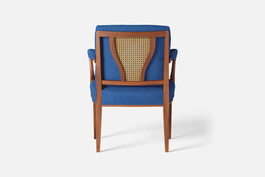 Med inspiration från 1700-talets nätta karmstolar formgav Josef Frank karmstol 969. För att skapa spänning i formgivningen valde Josef Frank ofta att blanda olika träslag och material. Karmstol 969 är gjord i mahogny med infällning av rotting i ryggen bakom den löstagbara kudden. Stolen formgavs 1939 och finns i två olika sitthöjder.