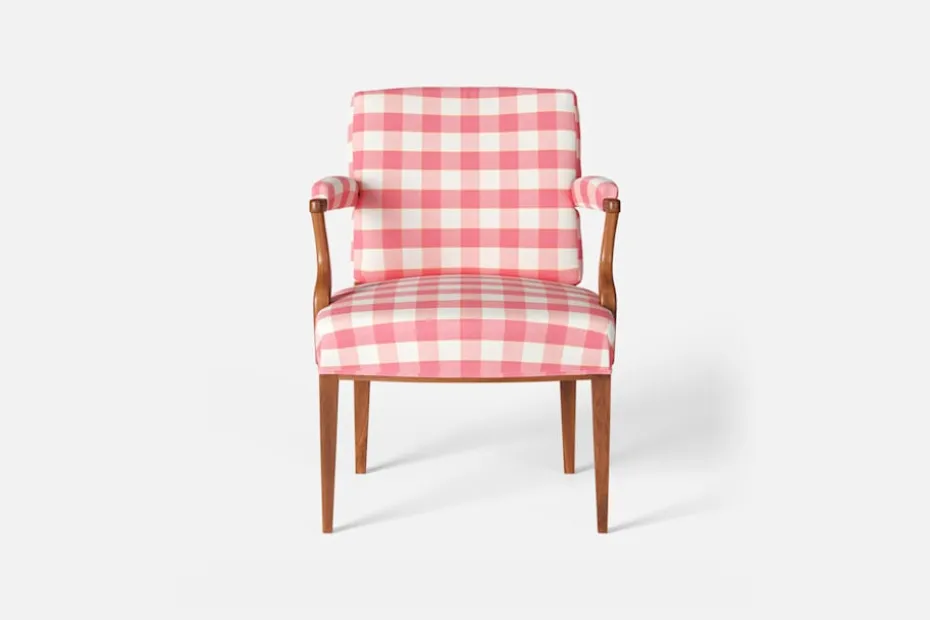 Med inspiration från 1700-talets nätta karmstolar formgav Josef Frank karmstol 969. För att skapa spänning i formgivningen valde Josef Frank ofta att blanda olika träslag och material. Karmstol 969 är gjord i mahogny med infällning av rotting i ryggen bakom den löstagbara kudden. Stolen formgavs 1939 och finns i två olika sitthöjder.