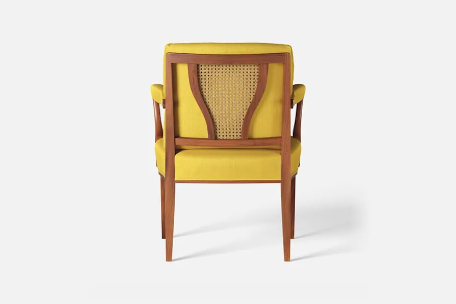 Med inspiration från 1700-talets nätta karmstolar formgav Josef Frank karmstol 969. För att skapa spänning i formgivningen valde Josef Frank ofta att blanda olika träslag och material. Karmstol 969 är gjord i mahogny med infällning av rotting i ryggen bakom den löstagbara kudden. Stolen formgavs 1939 och finns i två olika sitthöjder.