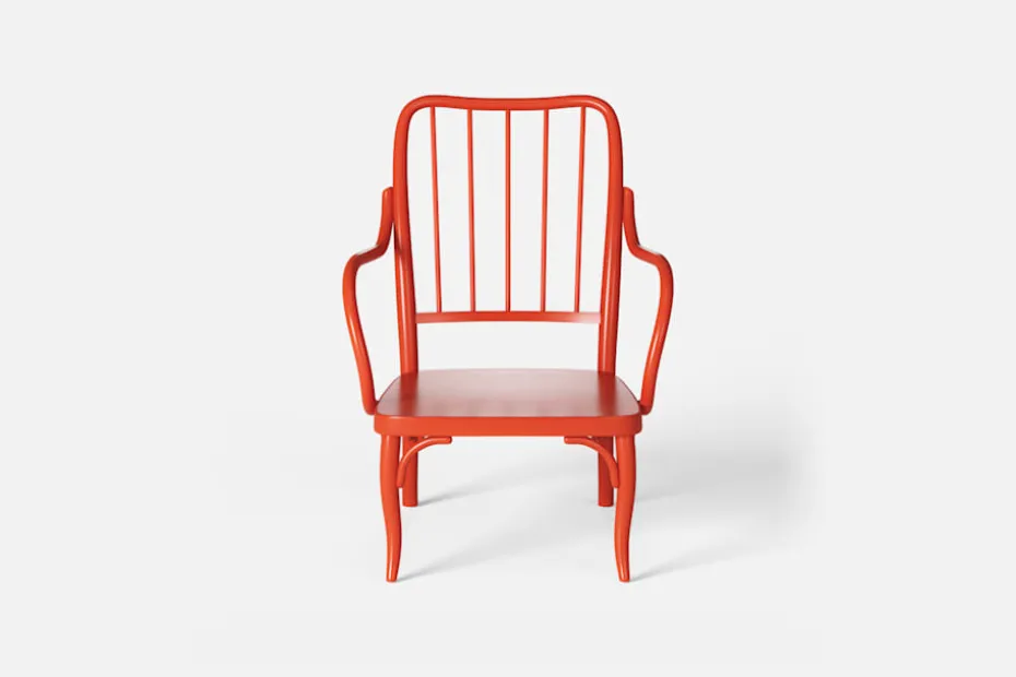 Josef Frank formgav flera böjträstolar under sent 1920-tal, varav några producerades för Thonet-Mundus AG i Wien. Böjträfåtöljen P4:s originalskiss har funnits bevarad i Svenskt Tenns arkiv och har troligtvis aldrig varit i produktion tidigare. Den har en genombruten rygg och detaljer av svarvade pinnar som gör att den inger ett lätt och luftigt intryck.
