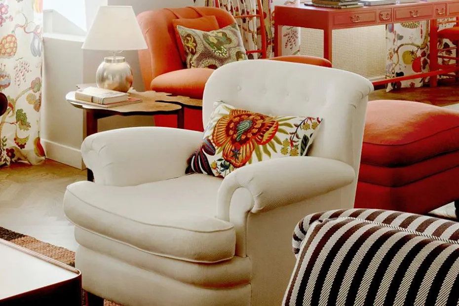 Svenskt Tenns klassiska kuddar är omtyckta världen över; från Stockholm till New York och Shanghai. Denna kudde i linnekretong har mönstret Aralia. Den för tiden djärvt stormönstrade linnekretongen Aralia, introducerades i samband med inredningen av ett hus i fashionabla Hohe Warte distriktet i Wien. Inredningen skapades av Josef Frank och hans kollega Oskar Wlach. De stora bladen i mönstret är nästan desamma som de som finns på krukväxten Aralia. Mönstret formgavs omkring år 1928.