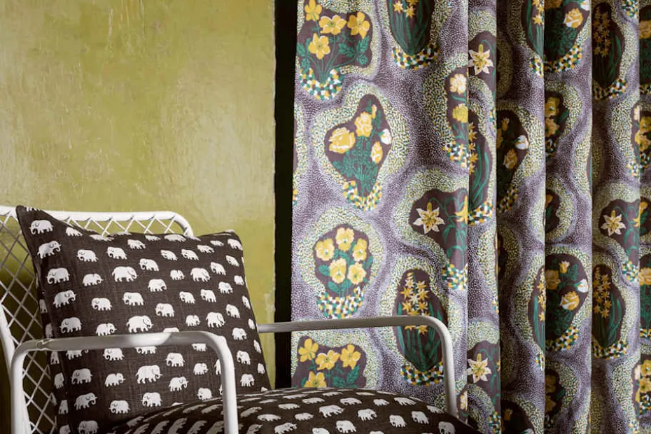 Svenskt Tenns klassiska kuddar är omtyckta världen över; från Stockholm till New York och Shanghai. Denna kudde i linnekretong har mönstret Elefant. Svenskt Tenns grundare Estrid Ericson reste mycket till olika platser runt om i världen. Hon letade alltid efter vackra föremål, textilier och souvenirer att ta hem och sälja i butiken på Strandvägen. Det var efter en förlaga från Belgiska Kongo som hon formgav mönstret med de små elefanterna. Svenskt Tenn tryckte textil Elefant för första gången i slutet av 1930-talet.