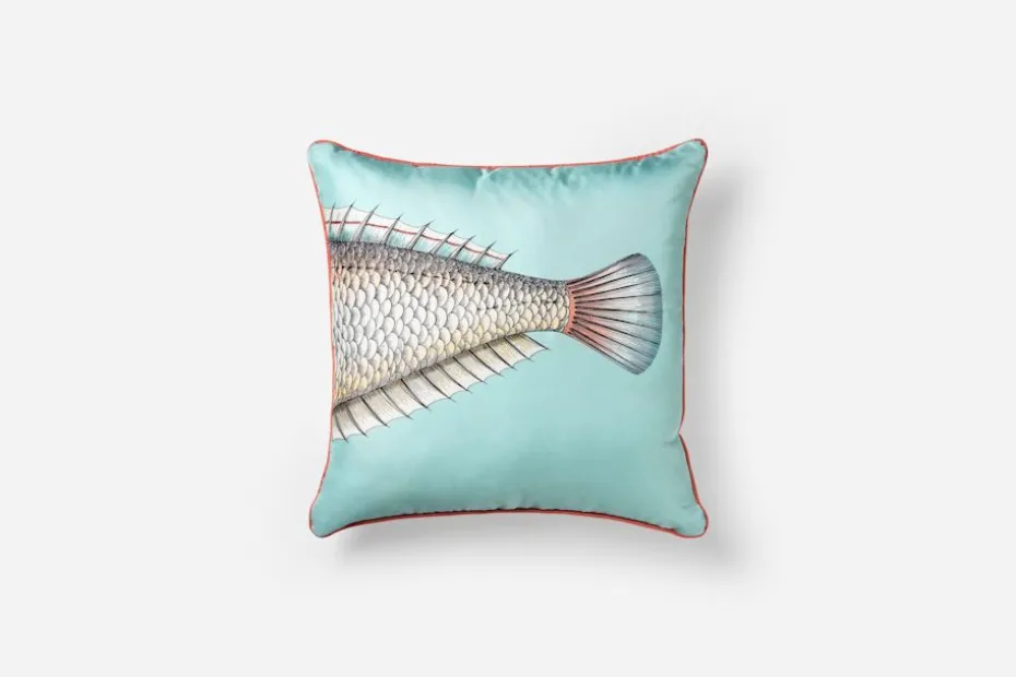 Dekorativa och lekfulla kuddar som tillsammans formar motivet av en stor fisk (grande pesce). Samtliga Fornasettis kreationer, från möbler till inredningsdetaljer, tillverkas för hand i Italien.