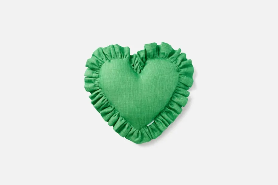 De lekfullt hjärtformade linnekuddarna sys för hand efter en idé och vision av formgivaren Margherita Maccapani Missoni. Denna kudde är sydd i Svenskt Tenns eget linnetyg i färgen Jadegrön.