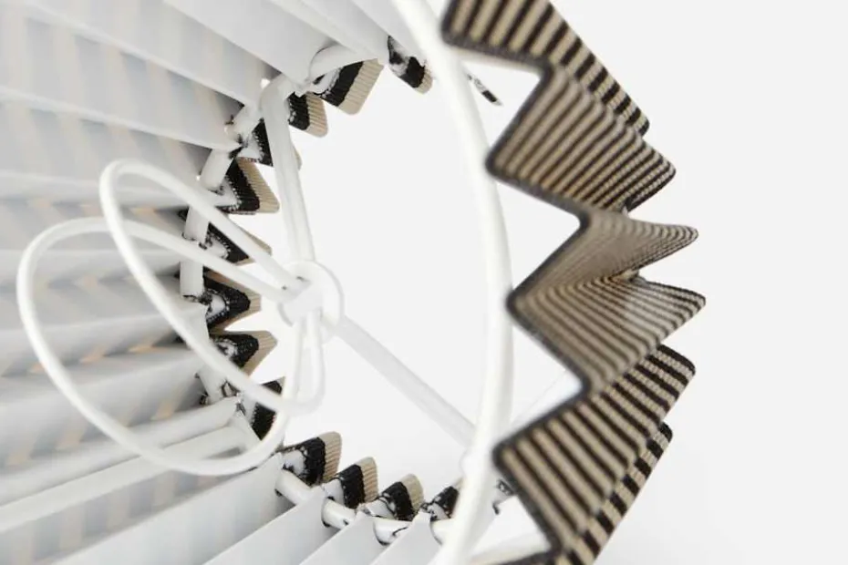 Veckad lampskärm i tyg Moire Stripe av Helene Blanche. Tyget har en klassisk elegans men samtidigt en modern känsla. Den unika sammansättningen av bomull och linne gör materialet krispigt och elegant. Svenskt Tenns plisserade lampskärmar tillverkas för hand. De passar både lampor i vårt eget sortiment, liksom andra moderna lampor och vintagelampor.