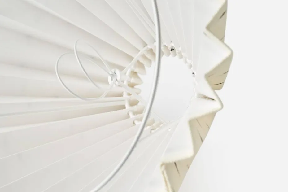 Plisserad lampskärm med utsökt droppmönster, ursprungligen formgivet av Helene Blanche i sitt arbete med handmålade lampskärmar. Det lekfulla men enkla mönstret, en imitation av en droppe bläck som möter en sidenyta, är tidlöst i sin design, tryckt på 100% fint belgiskt linnetyg.