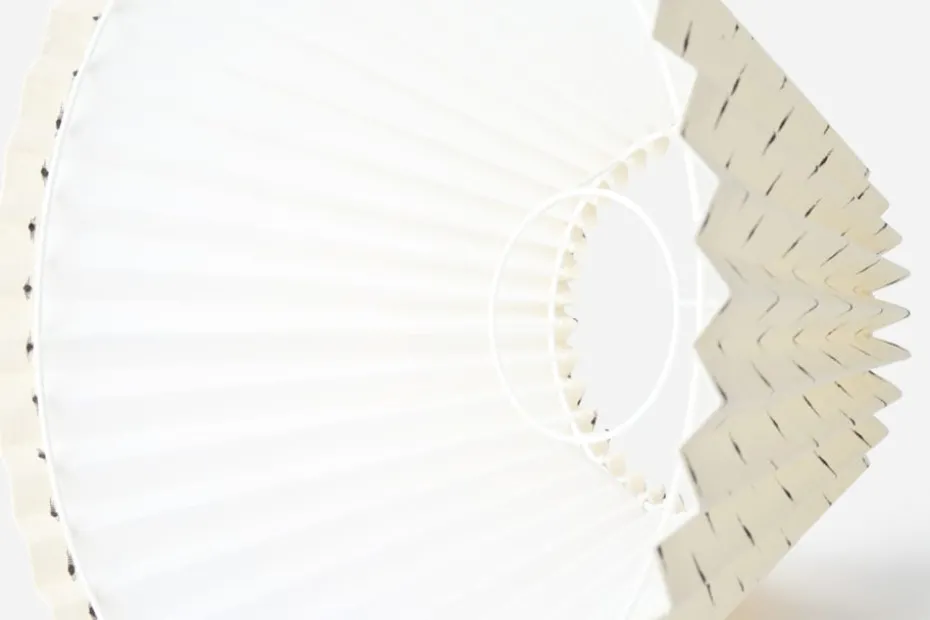 Plisserad lampskärm med utsökt droppmönster, ursprungligen formgivet av Helene Blanche i sitt arbete med handmålade lampskärmar. Det lekfulla men enkla mönstret, en imitation av en droppe bläck som möter en sidenyta, är tidlöst i sin design, tryckt på 100% fint belgiskt linnetyg.