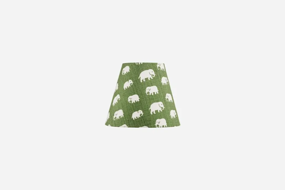 Josef Frank formgav en lampskärm till varje modell av sina lampor. Ursprungligen var de alla i vit textil, men Estrid Ericson lät senare sy upp dem med mönster av Josef Frank och andra formgivare. Denna lampskärm i linnekretong har mönstret Elefant. Svenskt Tenns grundare Estrid Ericson reste mycket till olika platser runt om i världen. Hon letade alltid efter vackra föremål, textilier och souvenirer att ta hem och sälja i butiken på Strandvägen. Det var efter en förlaga från Belgiska Kongo som hon formgav mönstret med de små elefanterna. Svenskt Tenn tryckte textil Elefant för första gången i slutet av 1930-talet. Elefantmönster