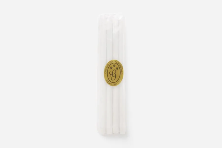 Ett fint, smalt och handstöpt stearinljus som passar Svenskt Tenns minsta ljusstakar: Ljusstake Stjärna och Ljusstake Ljusstjärnor från Svenskt Tenns arkiv samt Ljusstake Elefant av Björn Trägårdh.