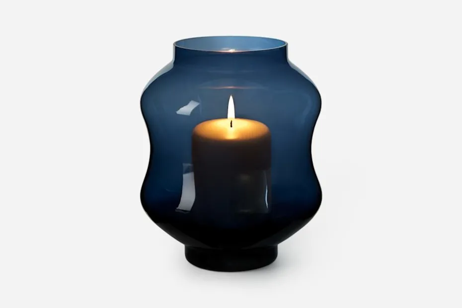 Formgivaren Johan Bjurmar inspirerades av minnen från havet när han skapade denna ljuslykta/vas för Svenskt Tenn. Sommarkvällar i Stockholms skärgård, hundratals papperslampor svävande över havet i Sydostasien och åren på västkusten då han badade i mareld var några av de tankar som vävdes samman i formen. Mareld tillverkas på Skrufs glasbruk i Småland och finns i fem olika färger: klarglas, grön, blå, tenngrå och bärnsten. Den kan användas både som ljuslykta och som dekorativ vas.