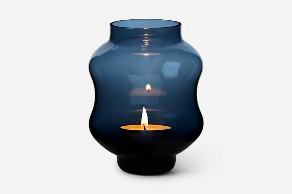 Formgivaren Johan Bjurmar inspirerades av minnen från havet när han skapade denna ljuslykta/vas för Svenskt Tenn. Sommarkvällar i Stockholms skärgård, hundratals papperslampor svävande över havet i Sydostasien och åren på västkusten då han badade i mareld var några av de tankar som vävdes samman i formen. Mareld tillverkas på Skrufs glasbruk i Småland och finns i fem olika färger: klarglas, grön, blå, tenngrå och bärnsten. Den kan användas både som ljuslykta och som dekorativ vas.