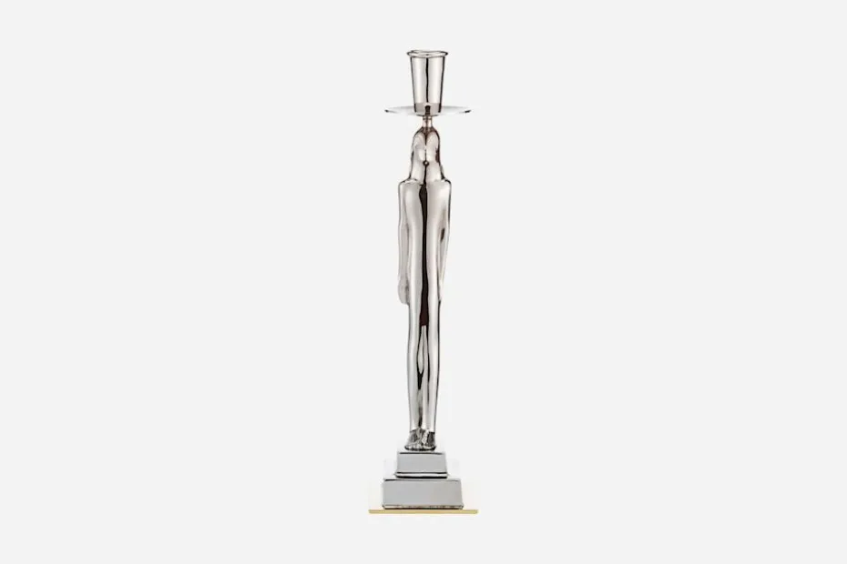 Den egyptiskinspirerade ljusstaken i tenn formgavs av Edvin Öhrström 1928. Troligen föreställer den Horusguden från den egyptiska mytologin. Formen skulle från början vara handtaget till en handspegel men gjordes om till ljusstake av Estrid Ericson.
