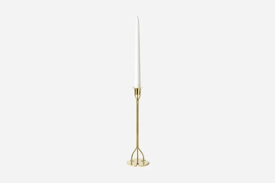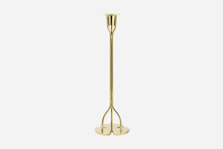 Denna mässingsljusstake är ett tydligt exempel på hur naturen med sina organiska former alltid varit en stor inspirationskälla för Josef Frank. Från klöverformen i foten har Josef Frank sammanfogat tre tunna ben som med en raffinerad enkelhet bär upp ljushatten.