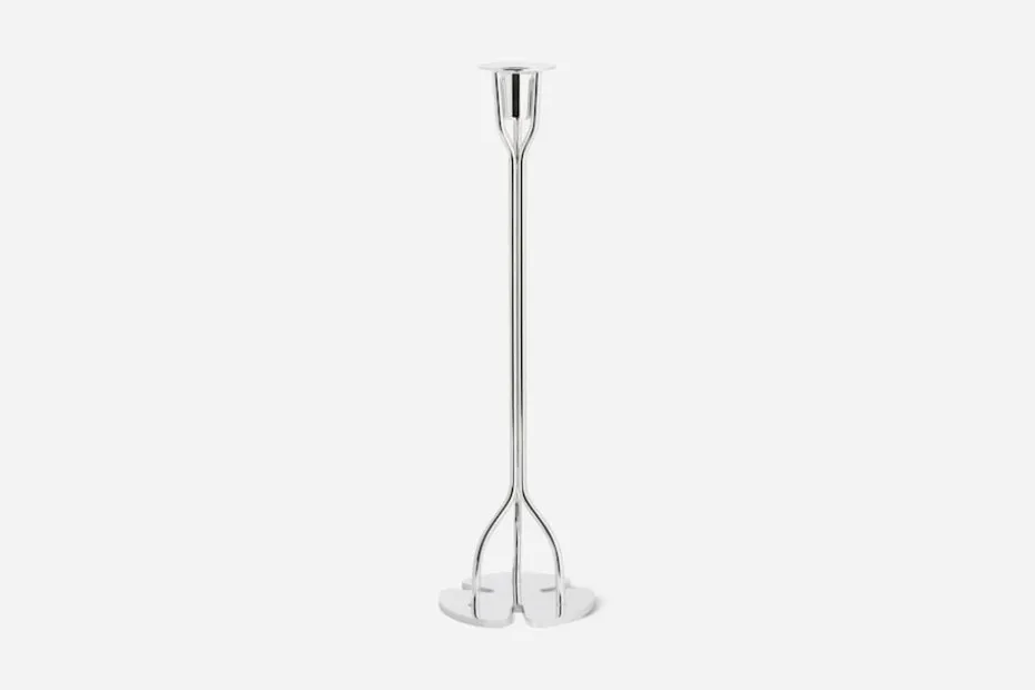 Denna försilvrade ljusstake är ett tydligt exempel på hur naturen med sina organiska former alltid varit en stor inspirationskälla för Josef Frank. Från klöverformen i foten har Josef Frank sammanfogat tre tunna ben som med en raffinerad enkelhet bär upp ljushatten.