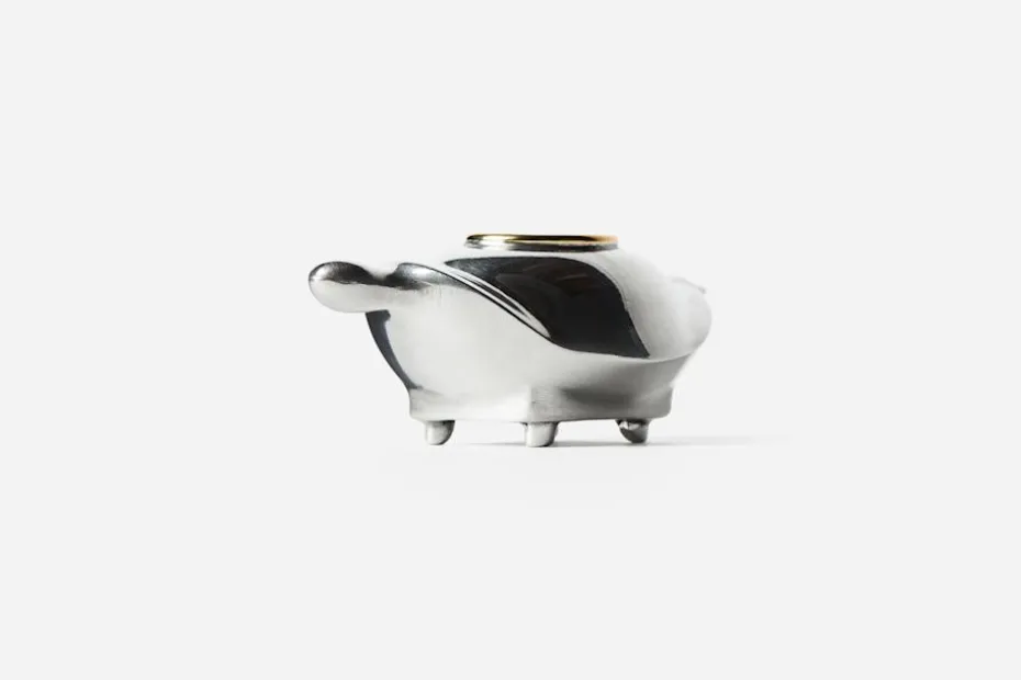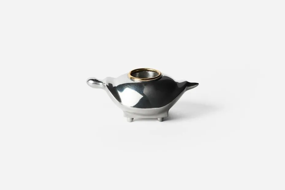 Theresa Traore Dahlbergs farmor kom från staden Boubou-Dioulasso i Burkina Faso och var en mästerlig sagoberättare. Inspirerad av de afrikanska folksagorna från sin barndom, såväl som av det pågående samarbetet med samtida bronsgjutare i Burkina Faso, har Theresa skapat ett helt nytt dekorationsföremål till Svenskt Tenns sortiment. En liten ljusstake i form av en sköldpadda – klok, stadig och dekorativ.