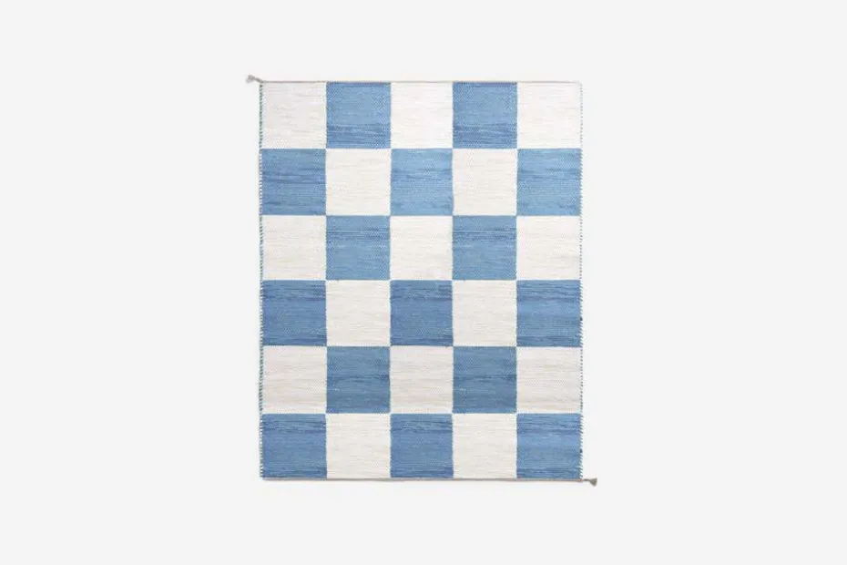 Svenskt Tenns dubbelvävda trasmatta ”Schackrutan” är formgiven av Margit Thorén under 1940-talet.