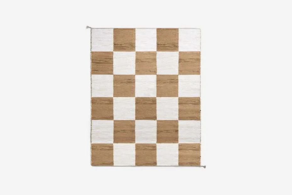 Svenskt Tenns dubbelvävda trasmatta ”Schackrutan” är formgiven av Margit Thorén under 1940-talet.