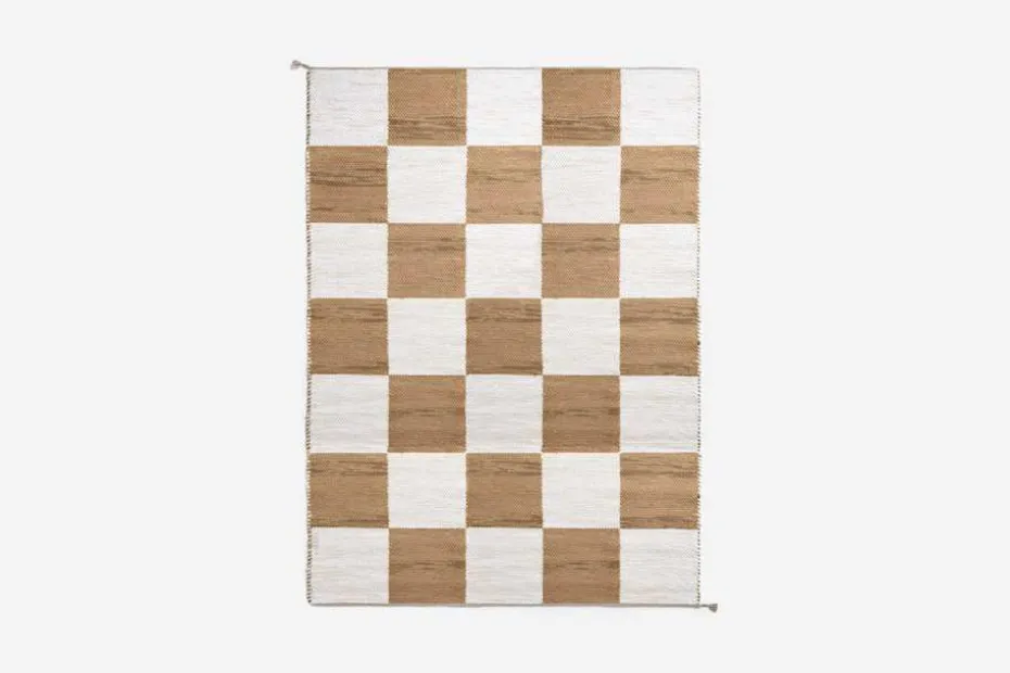 Svenskt Tenns dubbelvävda trasmatta ”Schackrutan” är formgiven av Margit Thorén under 1940-talet.