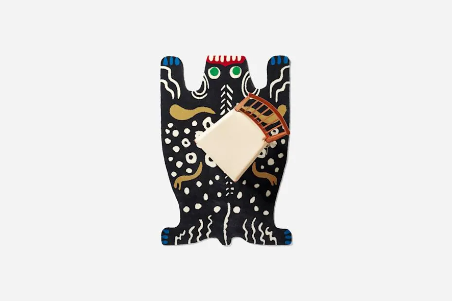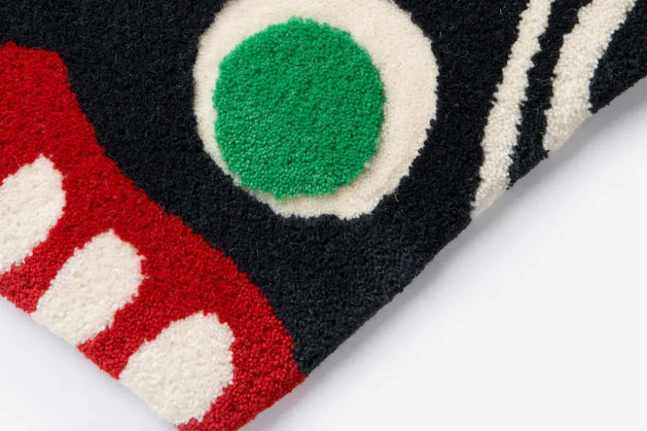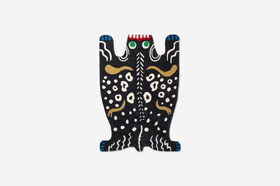 Josef Frank hade ingen förkärlek för jakt och ritade flera mattor avsedda att ersätta riktiga djurskinn. Hans mattor efterliknar även ofta stenlagda terrasser eller har abstrakta motiv. Blommor och fåglar trampar man inte på, men möjligtvis odjur. Den skräckinjagande besten är tänkt som en motsvarighet till det antika Medusahuvudet, som romarna gärna satte upp vid husingången för att hålla allt ont utanför hemmets tröskel, ”ont skall med ont fördrivas”. Mattan är formgiven runt 1950 och har fått smeknamnet ”Monstermattan”.