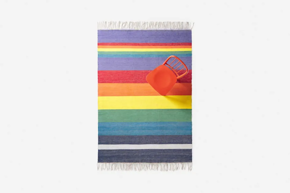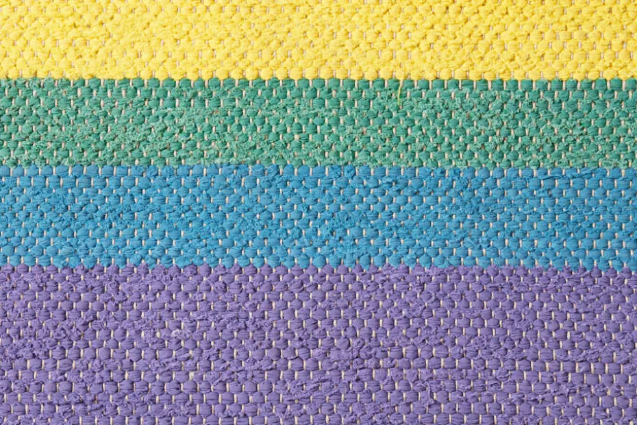 I början kan remsorna fälla trådar. Detta är en del av mattans utseende och karaktär och kommer att avta med tiden. Mattan är vävd av resttyger från produktionen av Svenskt Tenns linnetyg och Josef Franks textilier.