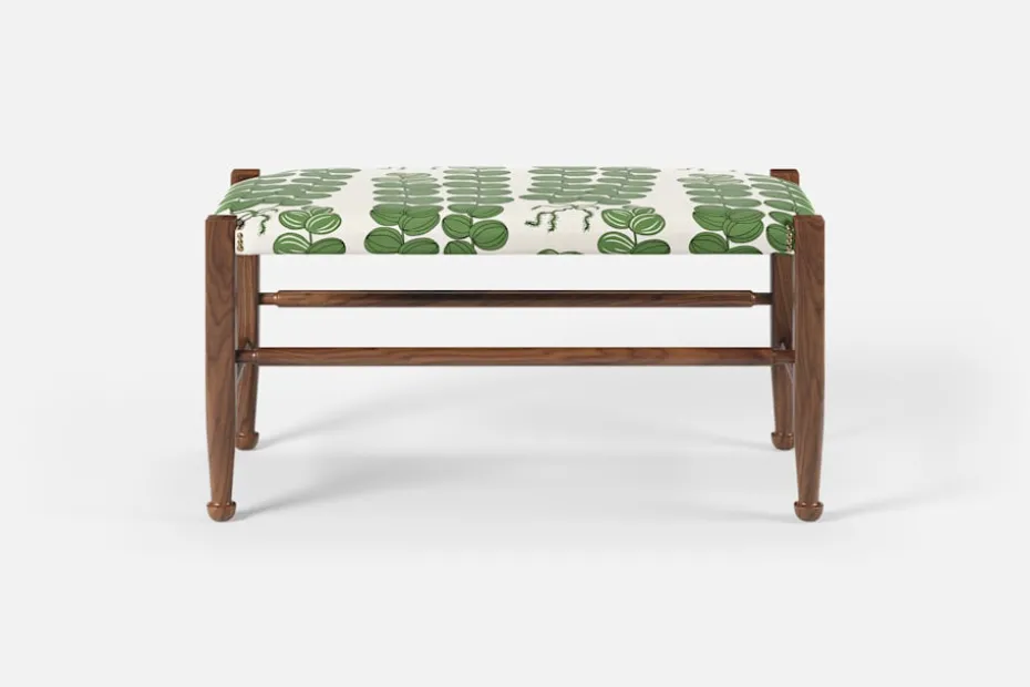 Lätthet och elegans kännetecknar ofta Josef Franks möbelkonst. Så också denna pall, med synliga ben och de typiska tassfötterna, som formgavs i slutet av 1940-talet. Inspirationen hämtade Josef Frank från England och 1700-talets Queen Anne-stil.