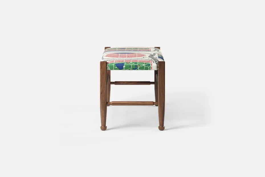 Lätthet och elegans kännetecknar ofta Josef Franks möbelkonst. Så också denna pall, med synliga ben och de typiska tassfötterna, som formgavs i slutet av 1940-talet. Inspirationen hämtade Josef Frank från England och 1700-talets Queen Anne-stil.