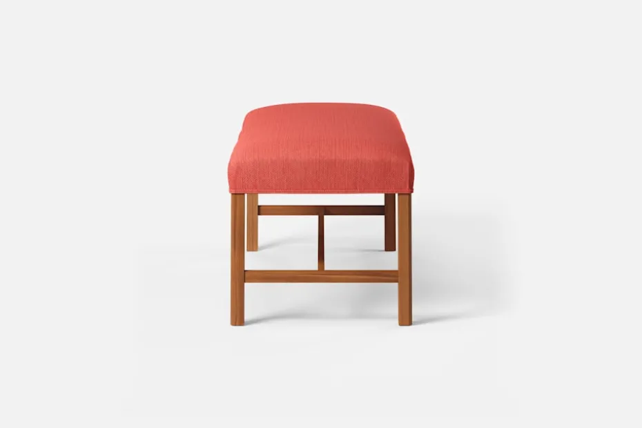 Denna rektangulära, stramt utformade pall med sits i tyg eller skinn formgavs av Josef Frank år 1950. De fyrkantiga benen har den typiska hörnprofileringen som kännetecknar Josef Franks formgivning. Benställningens H-kryss för tankarna till 1700-talets möbelformgivning.