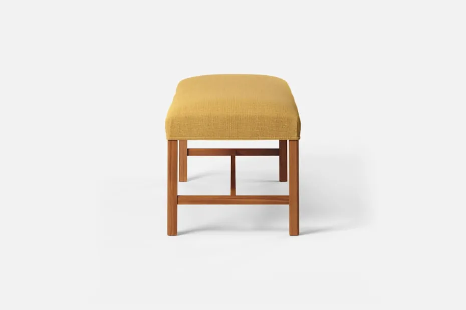 Denna rektangulära, stramt utformade pall med sits i tyg eller skinn formgavs av Josef Frank år 1950. De fyrkantiga benen har den typiska hörnprofileringen som kännetecknar Josef Franks formgivning. Benställningens H-kryss för tankarna till 1700-talets möbelformgivning.
