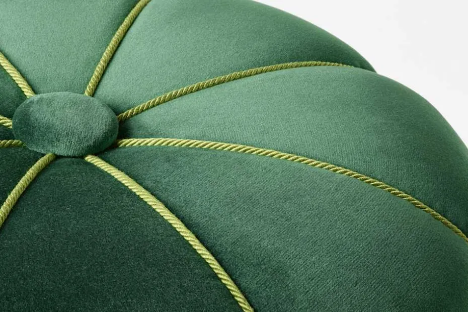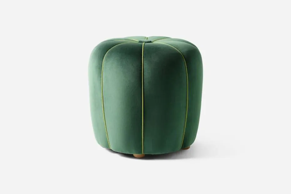 Den vackra, textilklädda pallen med mjuka, runda former ritades av Josef Frank för Svenskt Tenn cirka 1935. Pallen gjordes som en omarbetad variant av en möbel han skapade för sitt företag Haus und Garten i Wien, omkring 1929.