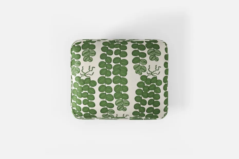 Denna fotpall formgavs av Josef Frank år 1936 tillsammans med fåtölj 568. Den generösa sittplymån under dynan och de facetterade nedåt avsmalnande benen är typiska för Josef Franks formspråk.