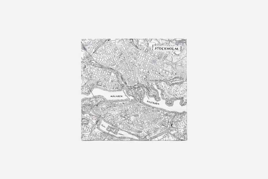 Elegant pochette i sidentwill med Josef Franks välkända mönster Stockholmskartan. Motivet som skildrar Sveriges huvudstad visades för första gången på Världsutställningen i New York år 1939.