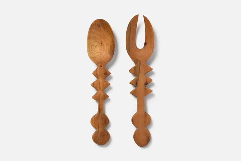 Salladsbestick i karaktäristiska former, småskaligt och hantverksmässigt tillverkade av marockanska Lalla de Moulati. Företaget skapar föremål i tuja, textil och porslin. Designen utgör en länk mellan olika kulturer och tidsepoker, vars gemensamma estetik är elegant, originell och autentisk.