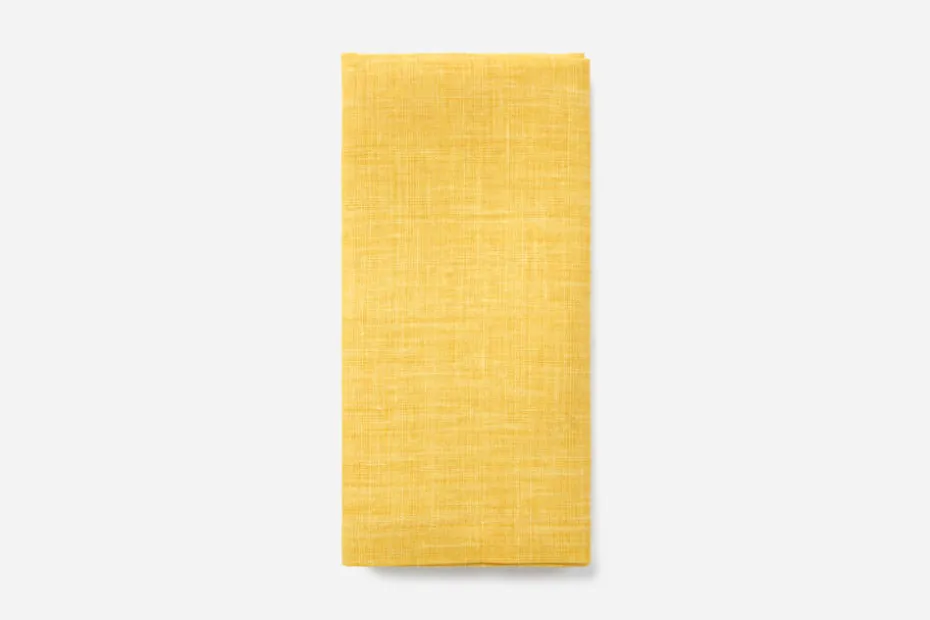 Tygservett i Svenskt Tenns eget, enfärgade linnetyg i citrongult. servetten kan kombineras såväl med enfärgade som mönstrade dukar och textilier.