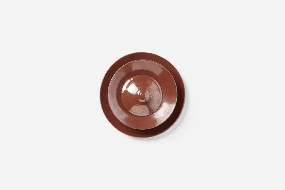 Servisen Ferro är ett vackert set bestående av en assiett och en skål med lock, formgivna och tillverkade för hand av keramikern Calle Forsberg i verkstaden i Saltsjö-Boo. Skålen kan med fördel användas till mindre förrätt, soppa eller dessert tillsammans med den tillhörande assietten på det dukade bordet.
