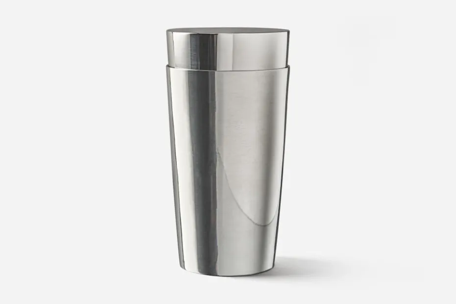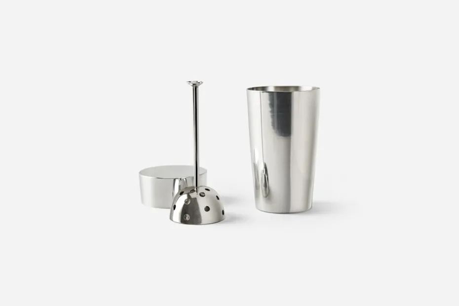 Klassisk cocktailshaker i funktionalistisk stil, framtagen från en förlaga ur Svenskt Tenns arkiv och formgiven under 1930-talets början.