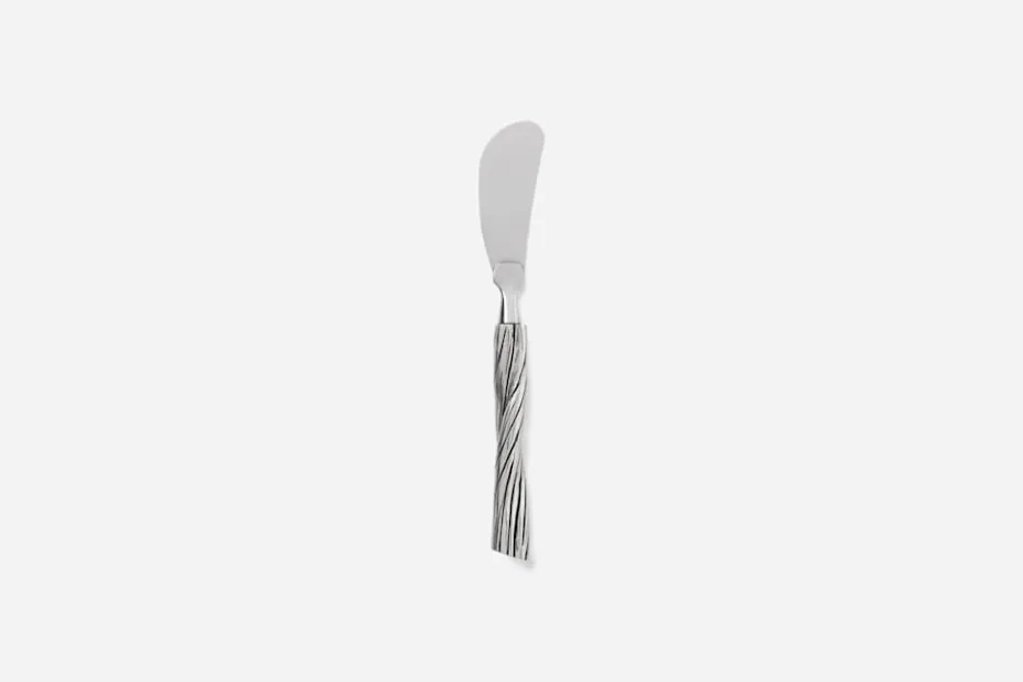 Den eleganta smörkniven Gren i tenn är en vidareutveckling av de klassiska tennljusstakarna med samma namn, formgivna för Svenskt Tenn av konstnären och skulptören Jakob Solgren Nordenskiöld 2011. Besticken bär samma vackra, naturinspirerade formspråk och tillkom i sortimentet 2025.