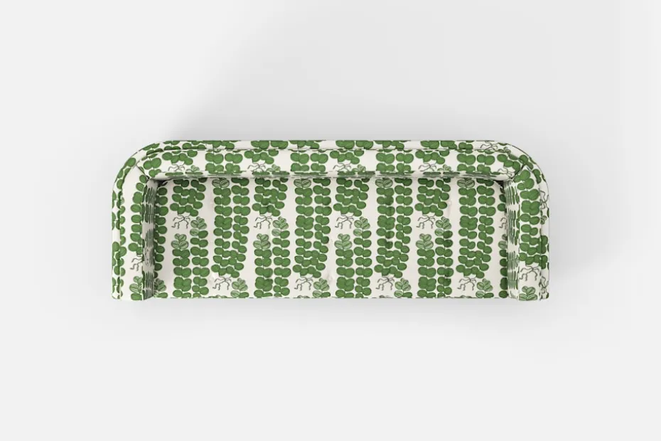 Soffa 136 formgavs av Björn Trägårdh för Svenskt Tenns tidiga möbelsortiment, och finns bland annat avbildad i företagets allra första möbelkatalog från 1931. Soffans rundade hörn och de lösa ryggplymåerna i samma form utmärker designen, som var ytterst ovanlig för soffor under tidigt 30-tal.